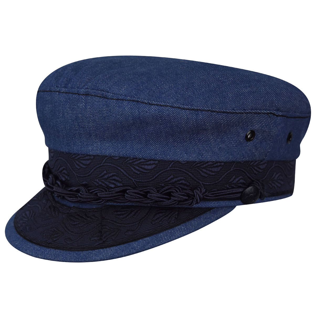 This style is an authentic Greek Fisherman Cap from Country Gentleman. An important part of Hellenic culture, these caps follow the traditional methods of manufacture that uses quality materials and careful handmade construction. The Authentic Greek Fisherman Cotton Cap features a flat crown that rises subtly in the front, a classic braided front band connected to the hat with anchor button studs, and decorative ribbon trim on the brim and around the base of the crown. Other details include a sharp 2 1/4” military-style brim and side ventilation holes with metal eyelets. Made in Greece.