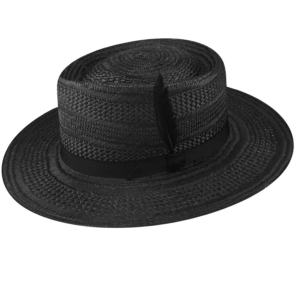 The Alix Fedora by Bailey 1922 has a tall 4 1/4" teardrop telescope crown with a 2 7/8" flat brim. Handmade in Ecuador from genuine Panama straw, this distinctive hat is trimmed with a tonal Japanese grosgrain band and removable duck feather, and is finished with a fine woven sweatband for the utmost in comfort and style.