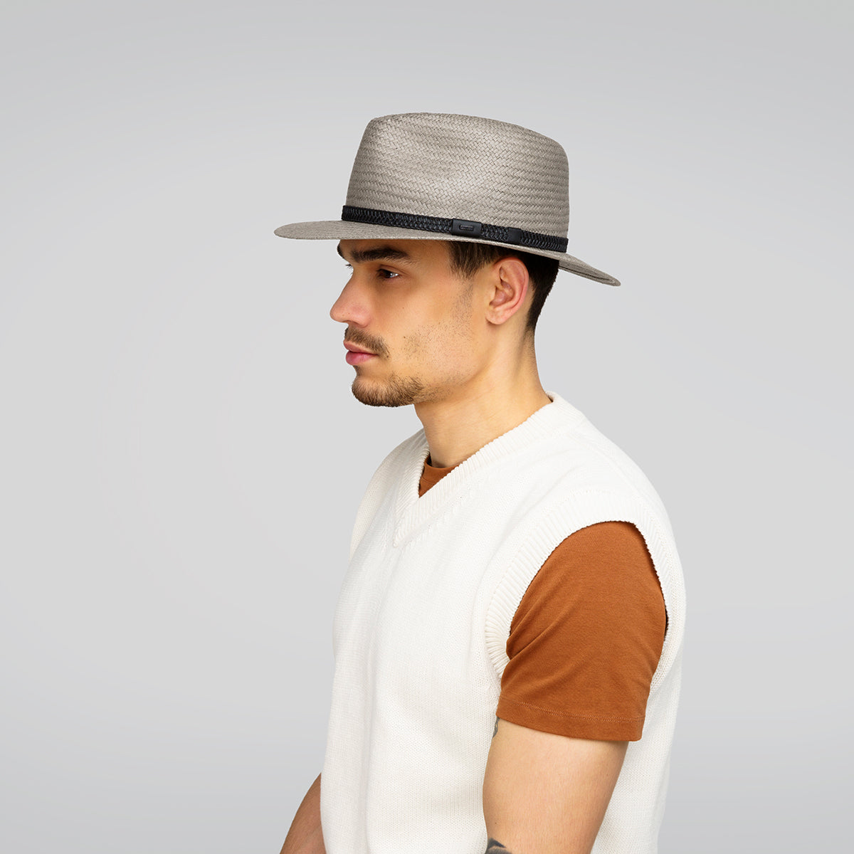 The Colwyn Raindura® Fedora by Bailey 1922 has a 3 3/4" Teardrop crown and 2 3/8" Turn Down brim. It is made using a revolutionary treatment process that takes thermosetting yarn and hand-weaves it into a paper straw body. This process makes the Colwyn water-repellent. The Colwyn is trimmed with a leather and hemp braided band and is finished with a moisture-wicking sweatband.