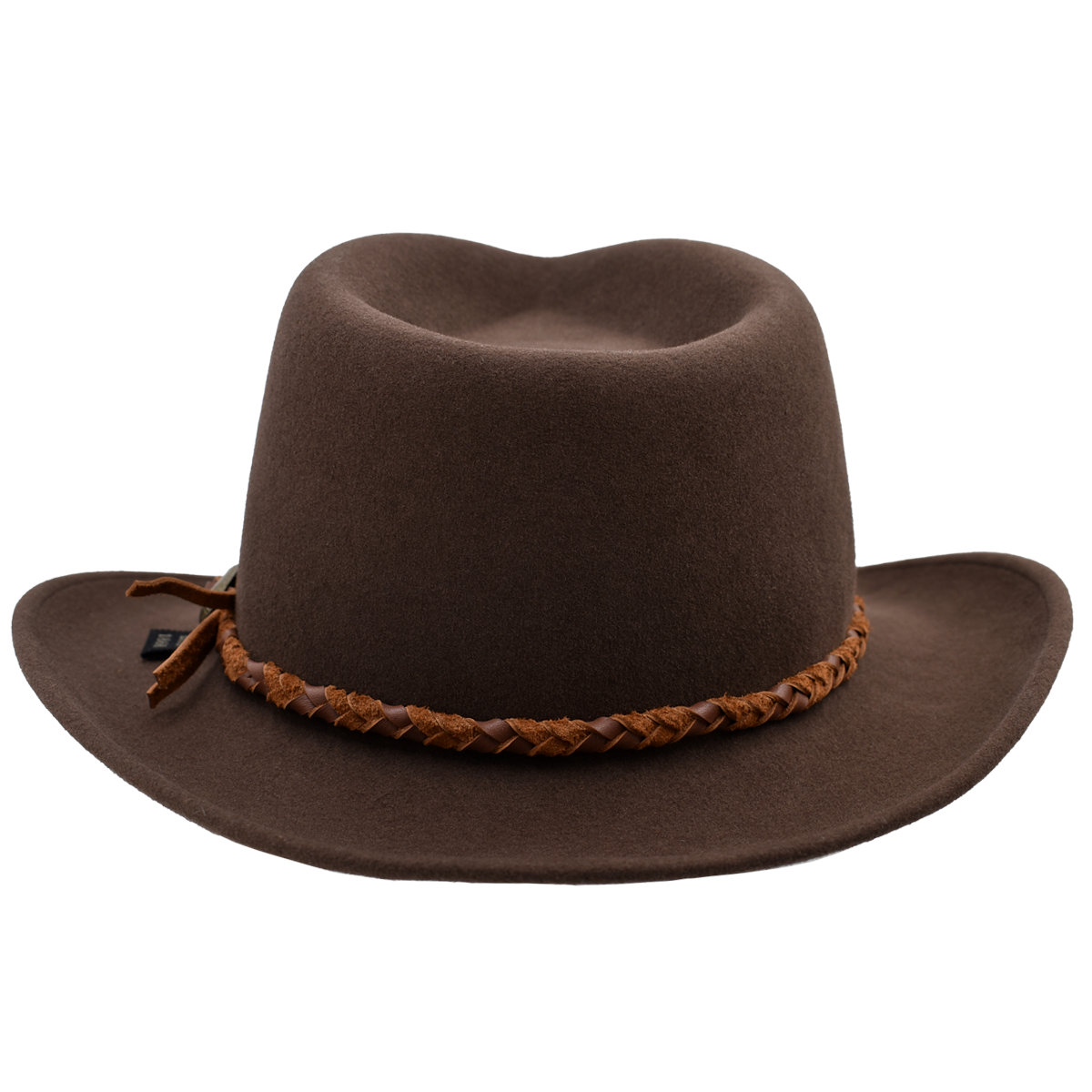 - 4 1/2" Outback Crown accented with Genuine Leather braided band & concho