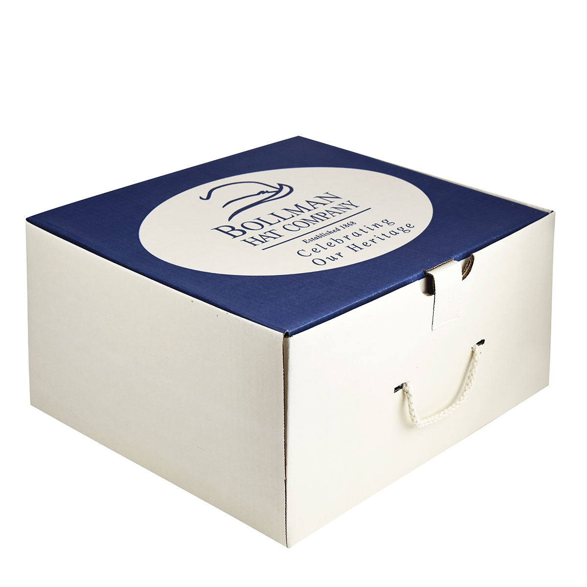 The Rosie, like the icon of the same name, has uncomplicated, masculine elements blended with an air of feminine power. Many women still enjoyed fashionable attire during wartime, but while economic prosperity allowed for fancier designs, these were not overly ornamental pieces. The Rosie is a beautiful representation of the complex role of women in the 1940's. This hat comes in a special edition Bollman Heritage Hat Box.