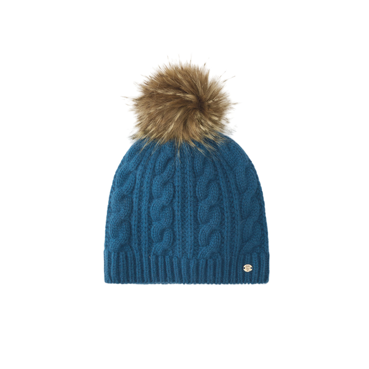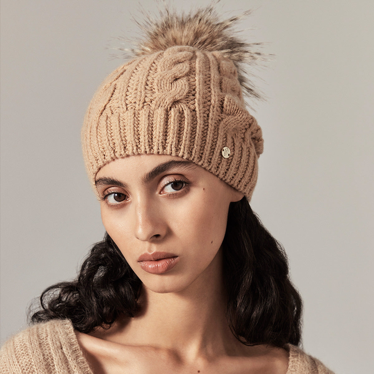 A winter staple reimagined with softness and charm. Crafted from an Italian wool–cashmere blend, the Helen Kaminski Nolan Beanie features a slouchy cable-knit silhouette and a removable faux fur pompom for adaptable styling.