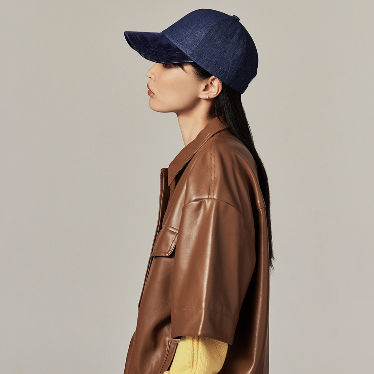 The Sutton by Helen Kaminski blends classic denim with a fine stripe corduroy peak for a textural twist on the everyday cap. With a 5-panel silhouette and 7.5cm peak, it features a breathable cotton lining and adjustable back strap for all-day comfort.