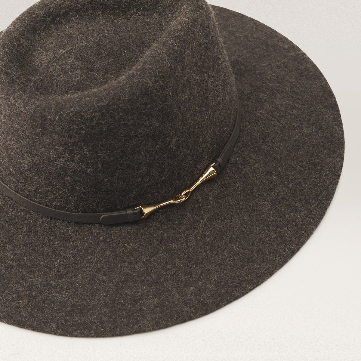 Bold yet timeless, the Helen Kaminski Claude Wool Fedora is crafted from rich Merino wool felt, offering a sculptural silhouette with a 10.5cm crown and flat 9cm brim. A smooth leather trim and signature equestrian snaffle detail elevate its classic shape with refined polish. Finished with a soft touch adjustable inner band and UPF 50+ protection, it brings modern elegance to seasonal dressing.