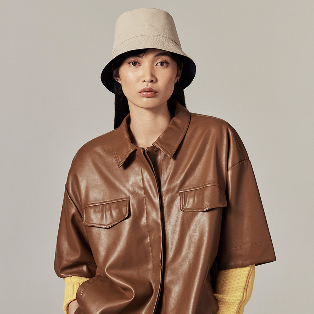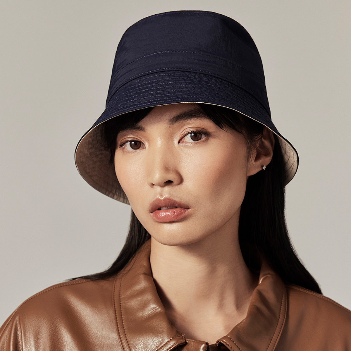A versatile bucket hat cut from water-repellent, recycled nylon. Features a clean 6cm brim, tonal topstitching, and fully reversible styling for varied wear. Finished with a UPF 50+ rating and a gender-neutral silhouette designed with utility and refinement in mind.