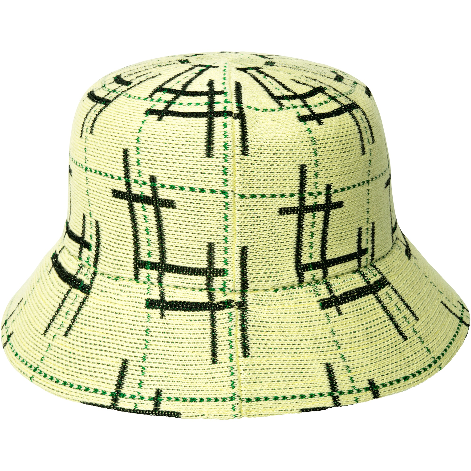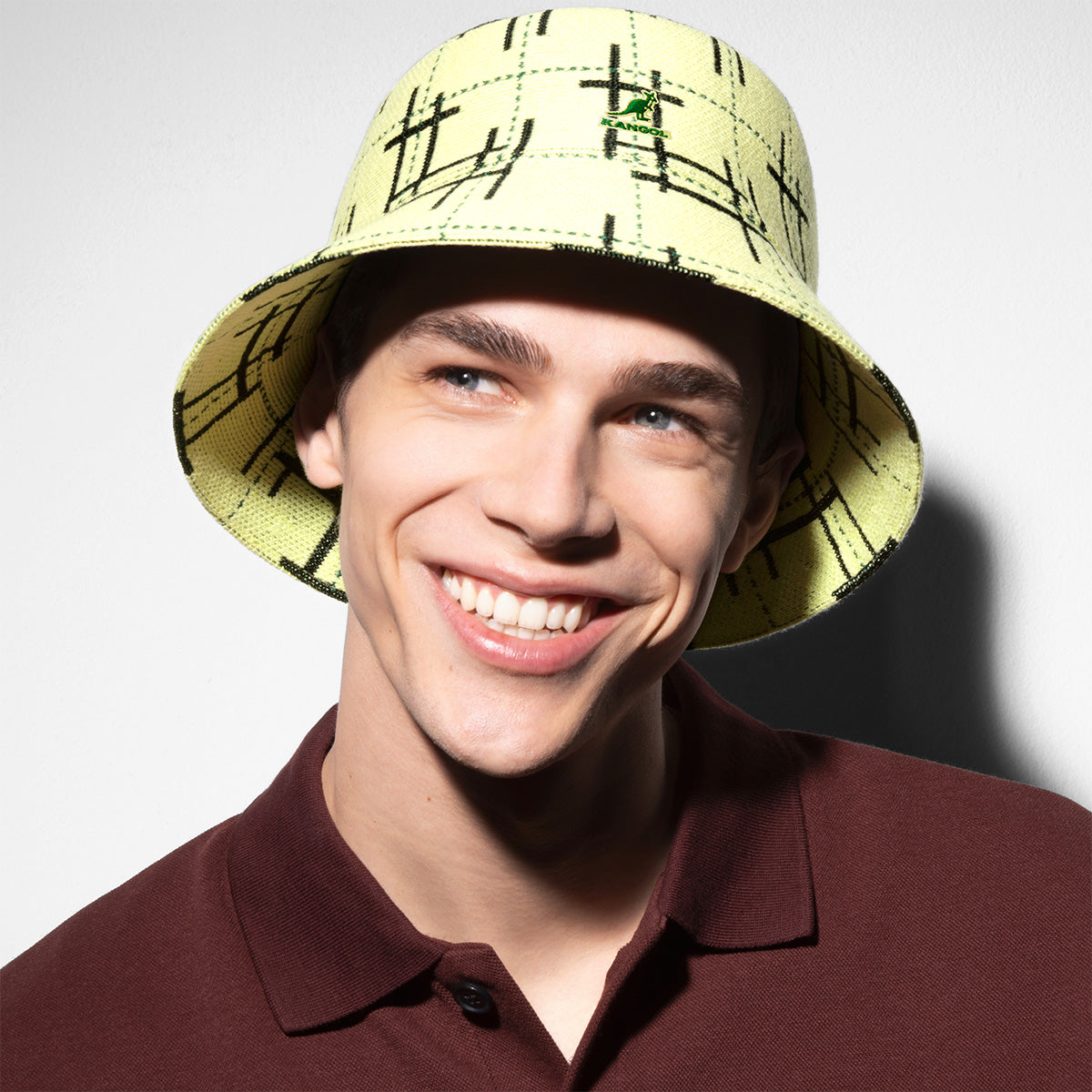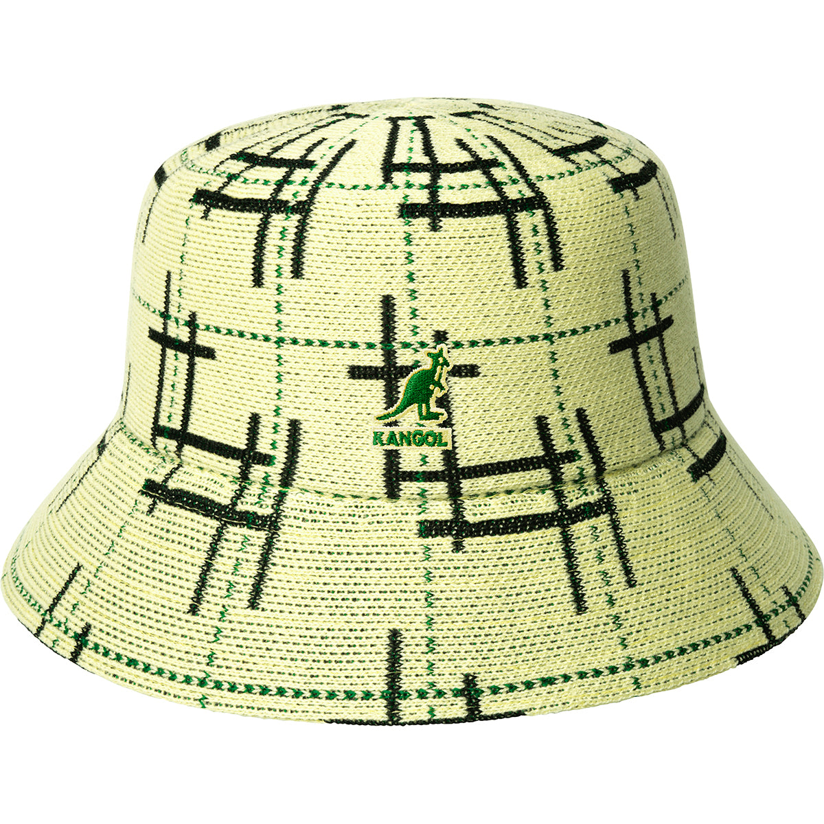 The Broken Tartan Lahinch by Kangol is a Wool and recycled polyester jacquard knitted in a beloved Bucket shape. The pattern is inspired by traditional tartan plaid which has been broken up at different points to give it a modern and punk-esque feel. It is completed with a matching Kangol™ kangaroo logo at the front.