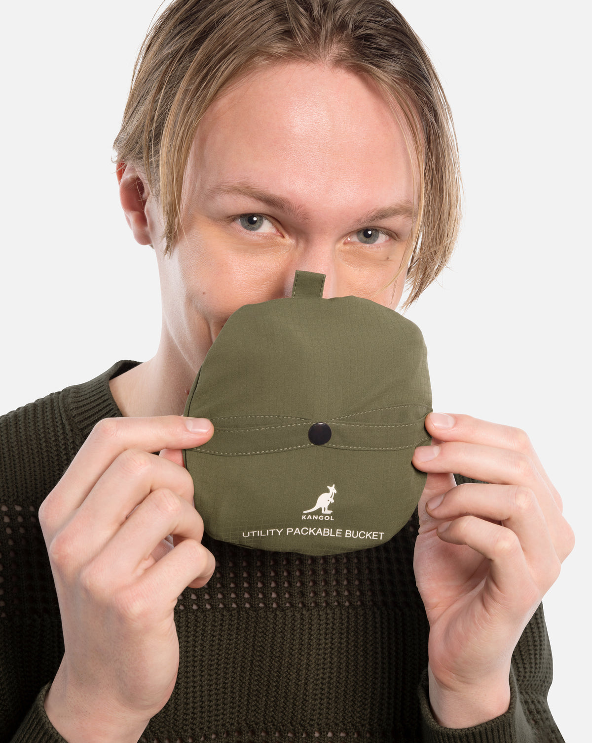 The Multi-Utility Packable Bucket by Kangol is ideal for any adventure that may come your way. Crafted from a water repellent, lightweight ripstop material, this new bucket hat is perfect for Spring temps. The Bucket features a hidden pocket at the interior crown which can also be used to pack the hat into when folded and flipped inside out. This style is perfect to carry around just in case there are unexpected showers. The Bucket is finished with a Kangol® Kangaroo embroidered on the front brim.