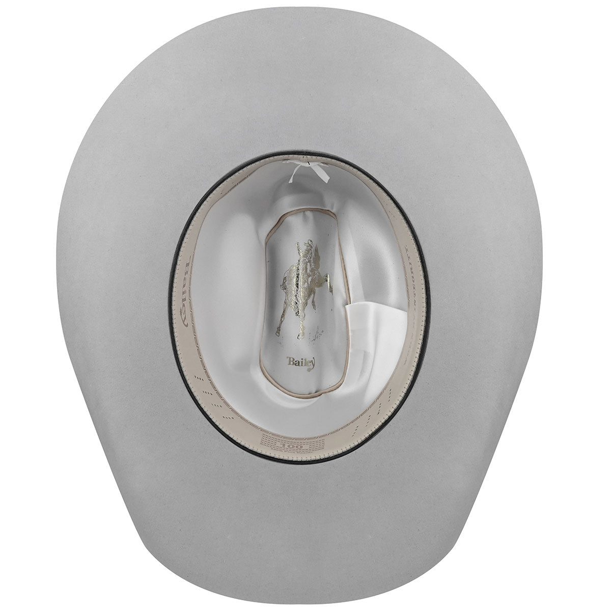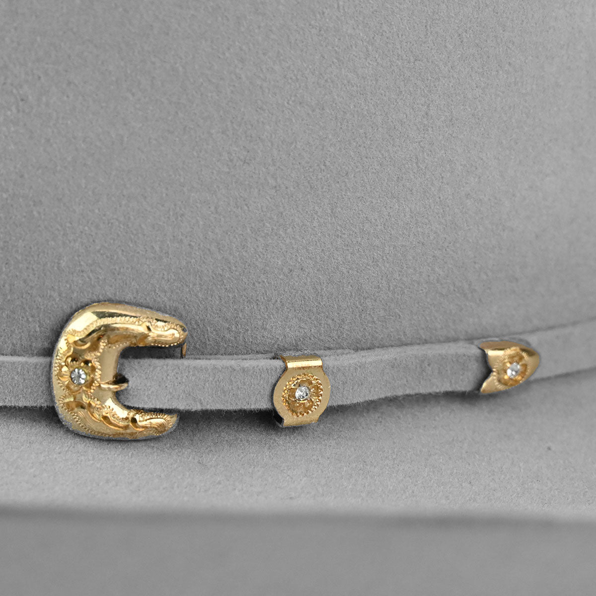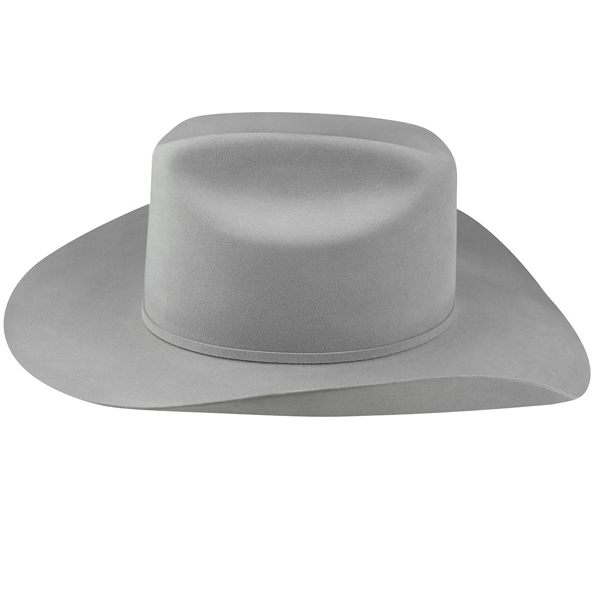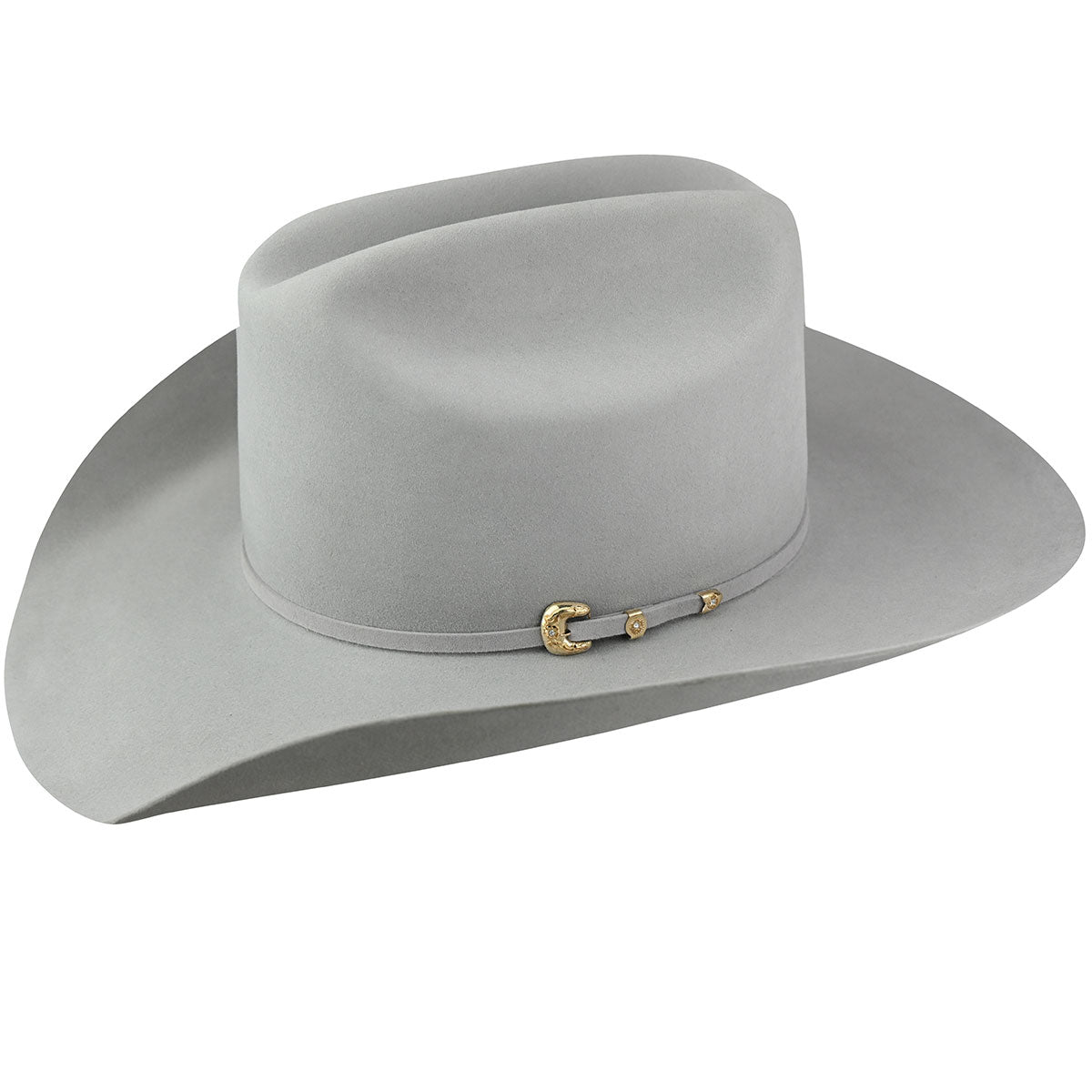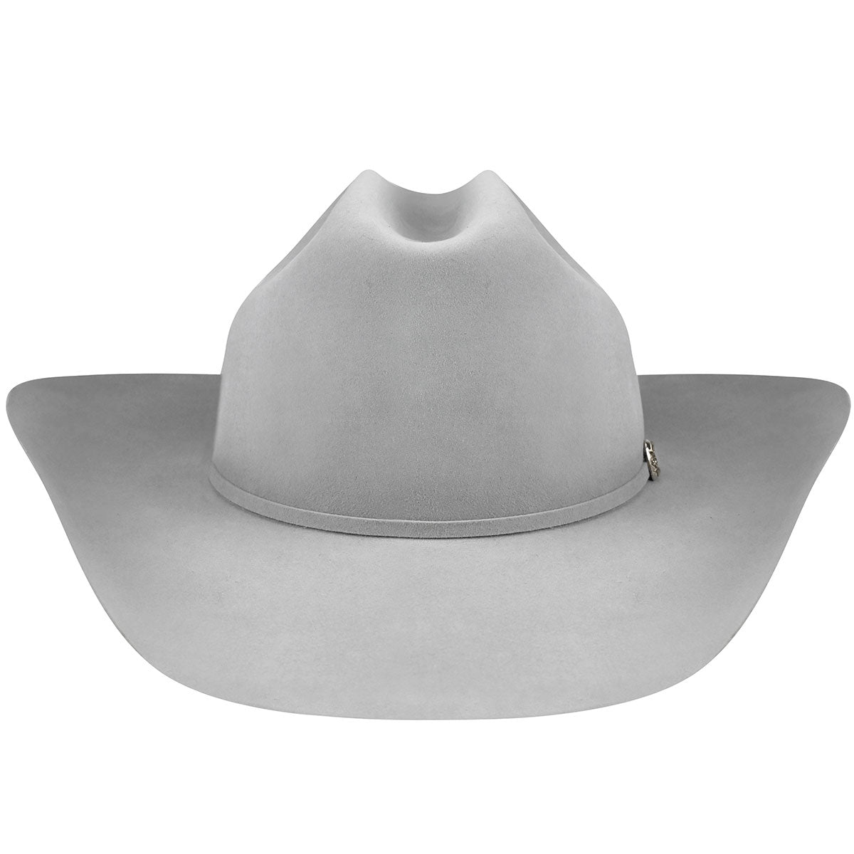The Bailey Western Legacy 100X is a 100% pure beaver fur felt western hat. It has a 4.5" cattleman crown and a self-felt hatband that is fancied up with a silver bucket set embellished with three blue stones.