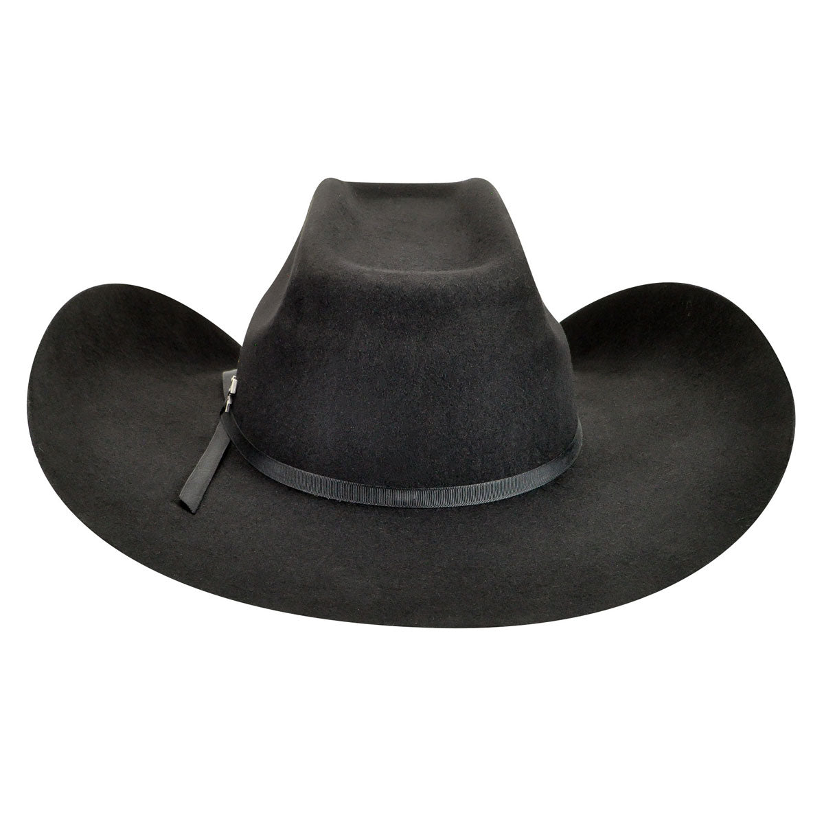 The Bailey Western Murphy II is a wool felt western featuring a 4 1/4" brim and a brick shaped long oval crown. It is finished with a clean and classic grosgrain hat band with a Bailey spur pin and a comfort sweatband.