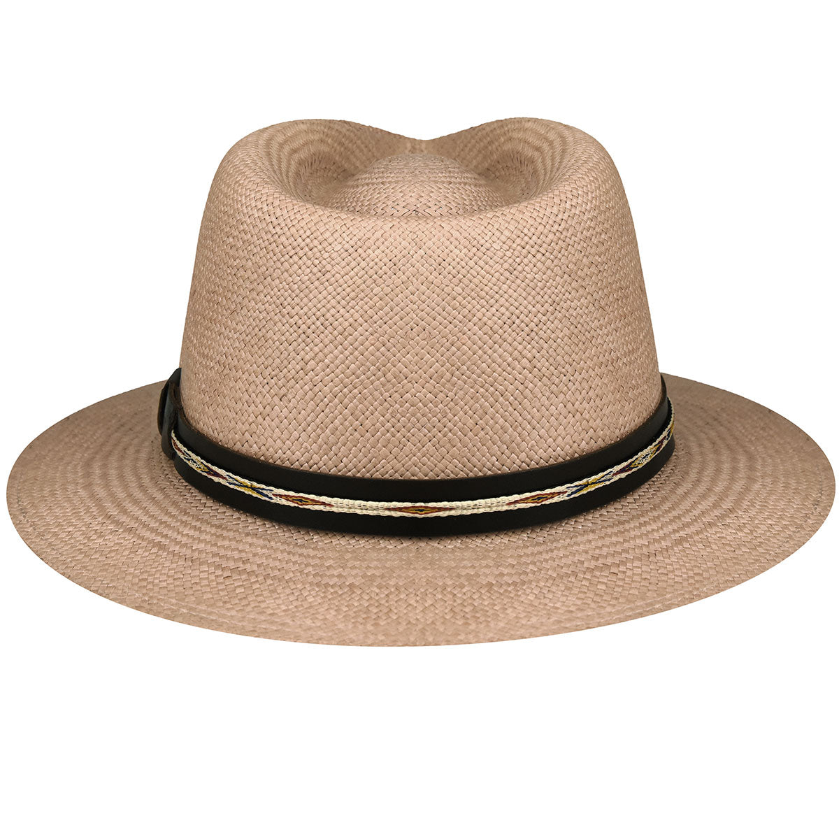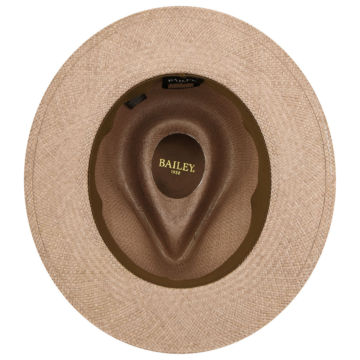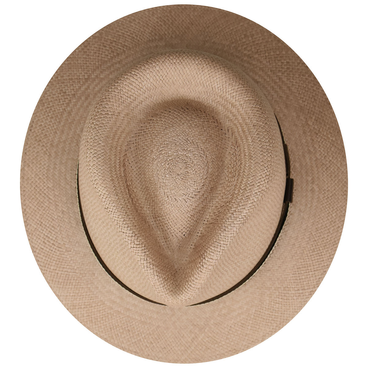 The Bailey 1922 Stansfield is a handwoven genuine Panama hat handmade in Ecuador in a Brisa weave. It features a 3 3/4" Teardrop crown and a 2 1/2" Turn Down brim. It is trimmed with a genuine leather band and a fine woven sweatband.
